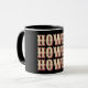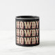Estilo retro cowboy "Howdy Howdy Howdy" diseño de texto con letras rayadas en colores amarillo, rojo y beige