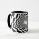 Taza Ilusión óptica en blanco y negro, monograma blanco