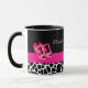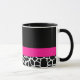 Un lindo tazón rosado y negro con un gráfico patrón de jirafa en blanco y negro y un par de bombas de color rosa ondulado. Personalice este diseño de zapatos lindos agregando el nombre de cualquier muchacha adolescente.