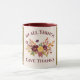 Start your morning with gratitude and grace with this elegant “In All Things Give Thanks” mug. The design features a lovely autumnal floral spray framing the timeless Scripture-inspired phrase, set against a subtle gold and white damask background for a touch of refinement. The coordinating burgundy interior and handle tie the look together, making this mug as beautiful as it is meaningful.