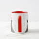 The mug has a design of a cute Irish Wolfhound dog wearing a Santa hat. The background of the mug is covered in a repeating pattern of the words "woof". The image is bright and cheerful, and it would be perfect for a Christmas-themed gift.
