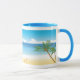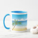 Blanco y azul claro de 11 oz. tazón combinado con una imagen personalizado de un día perfecto en una isla desierta, con una palmera, cocos y el mar azul profundo. Ver la tarta de caramelo, taza de espresso, jarra, placa de papel, vidrio de disparo, tetera y tiras acuáticas. Ver toda la colección Shipwreck Candy Jar en FOOD/BEV | Sección de platos.