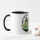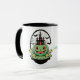 Este personalizable de diseño de tazas temáticas de "Halloween" incluye un Jack o Lantern verde y una mansión embrujada rodeada de murciélagos con un texto que puedes personalizar.