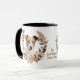 Una corona de otoño de bonito en tonos marrones, canela y crema rodea la imagen acuarela de un Jack Russell Terrier Dog de color marrón y blanco. La imagen se imprime dos veces en la taza, con el texto de su personalizado entre ellas.