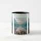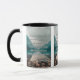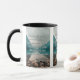 Esta taza presenta la escritura de la Biblia James 1:12 KJV en un tipo de letra original único sobre un fondo de imagen con un hermoso lago que fluye a través de las montañas. La llanta y la manecilla están acristaladas con colores a juego disponibles en la construcción de cerámica de microondas y lavavajillas de 11 onzas o 15 onzas.