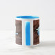 Un disparo en el Jardín de Dios en el pico Twin Siamese. Mirándolo a través de Pike's Peak que es brillante y colorido que está en un RINGER MUG.