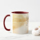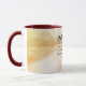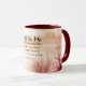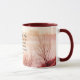 El tazón de café inspirador de las escrituras personalizados representa un río rodeado de montañas y árboles. Presenta la Biblia Verse Jeremiah 33:3, "Llámame y te responderé y te mostraré cosas grandiosas y poderosas que no sabes".