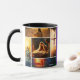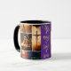 Jesús Collage Mug - esta es una taza multicolor con tonos dorados, blues, morado y crema. El tipo de letra de la taza es "Rey de reyes y Señor de señores".