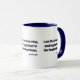 Esta taza de dos tonos muestra un diseño que tiene un tipo de letra poetsen con letras azul marino, contorno grisáceo que muestra el versículo de la escritura bibliográfica "John 15:1" de KJV sobre un fondo blanco de este tema basado en la fe. Este verso hace referencia al capítulo 15 del Libro de Juan que muestra el primer verso de esta escritura biblia, el tema de la cita de la Biblia del Rey James. La llanta y la manecilla están acristaladas con colores a juego disponibles en la construcción de cerámica de microondas y lavavajillas de 11 onzas o 15 onzas.