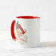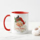 Feliz saludo de Navidad de un viejo y alegre Santa Claus con barba blanca y mejillas rojas rosadas, un brote de holly en su gorra cubierto de nieve roja a un lado de la taza. Añade un nombre y el año actual o personaliza con el texto de tu elección en el otro lado.
