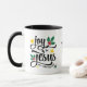 Personalized JOY IN JESUS Christian Christmas Souvenir Mug with bold black script typography and holly. Ideal personalized greeting, with a strong Christmas message of joy in Jesus all year round. You can PERSONALIZE with your family or group name and year in the middle. Matching gifts available.