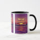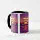 Esta taza de dos tonos presenta un diseño de tipografía que tiene un tipo de letra con marcado permanente con letras de color púrpura, un contorno de color marrón que muestra el versículo de la escritura bibliográfica "John 1:5" de KJV sobre una imagen que muestra una gran luna brillante sobre una puesta de sol morada con palmeras en la lejanía de este tema basado en la fe. Este verso hace referencia al primer capítulo del Libro de Juan que muestra el quinto verso de esta escritura biblia, el tema de la cita de la Biblia del Rey James. La llanta y la manecilla están acristaladas con colores a juego disponibles en la construcción de cerámica de microondas y lavavajillas de 11 onzas o 15 onzas.