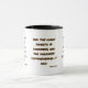 Esta taza de dos tonos presenta un diseño de tipografía que tiene un tipo de letra con marcado permanente con letras negras, un contorno de color marrón que muestra el versículo de la escritura bibliográfica "John 1:5" KJV sobre un fondo blanco de este tema basado en la fe. Este verso hace referencia al primer capítulo del Libro de Juan que muestra el quinto verso de esta escritura biblia, el tema de la cita de la Biblia del Rey James. La llanta y la manecilla están acristaladas con colores a juego disponibles en la construcción de cerámica de microondas y lavavajillas de 11 onzas o 15 onzas.