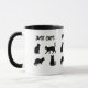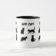 Start your day with a dose of feline charm! This minimalist black-and-white mug features four adorable black cat silhouettes and the bold phrase Just Cats — because what else do you really need?