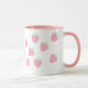 Esta jarra kawaii blanca y rosa está diseñada con una diminuta fresa rosa pastel por toda la jarra.