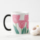 Una pintura acuarela inspirada en tulipanes en vivo de bonito recibidos como regalo. Las flores rosas lisas son elegantes y encantadoras para ver en cualquier habitación. Hace un maravilloso regalo de taza para un miembro de la familia o un amigo.