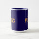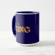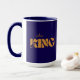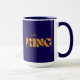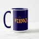 Un tazón de café azul real con la palabra "Rey" en ambos lados, escrito en oro. Esta taza es una gran opción de regalo para cualquier ocasión, incluyendo cumpleaños, el Día del Padre y el Día de Apreciación del Profesor. También puede ser un placer para ti mismo.