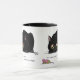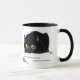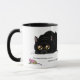 El gato negro está a punto de saltar y hacer la "maniobra de gatitos". Ratón de juguete cerca del gato negro.