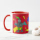 Dream of fantastic knights & dragons with this mug designed by Christian Tresierras! His vibrant, hand-drawn illustration features two colorful knights surrounded by lightning bolts and stars as they battle a fierce blue dragon!