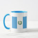 La bandera de Guatemala ofrece dos colores: azul y blanco de cielo. Las dos rayas azules de cielo representan el hecho de que Guatemala es una tierra situada entre dos océanos, el Océano Pacífico y el Océano Atlántico (mar del Caribe); y el cielo sobre el país (véase el himno nacional de Guatemala). El color blanco significa paz y pureza. En el centro de la bandera está el escudo de armas guatemalteco. Incluye el quetzal resplandeciente, el pájaro nacional de Guatemala que simbolice libertad; una voluta del pergamino que lleva la fecha de la independencia de America Central de España, el 15 de septiembre de 1821; rifles cruzados, indicando la buena voluntad de Guatemala de defenderse por la fuerza si se da el caso; una corona del laurel de bahía, el símbolo para la victoria; y espadas cruzadas, representando honor. La bandera centroamericana fue utilizada en Guatemala hasta el 1851, cuando una facción favorable-Española asumió el control y añadió los colores españoles de rojo y de amarillo a la bandera. Los colores originales fueron restaurados el 17 de agosto de 1871, pero como (bastante que horizontal) rayas verticales y con un nuevo escudo de armas. El quetzal resplandeciente apareció previamente en los 1830s en la bandera de los altos del Los, el sexto estado en la república federal.