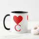 Taza La C inicial con un gran corazón rojo