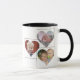 La parte delantera de esta taza personalizada tiene tu foto favorita de mamá y niños en el corazón con el texto, "La mejor mamá del mundo" y la parte trasera tiene tres corazones con fotos de niños. Perfecto para un regalo de mantenimiento sentimental del día de la madre.