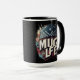 Este tazón de café muestra un fondo urbano audaz al estilo del graffiti con el texto "Mug Life" en una llamativa fuente de arte callejero. El diseño encarna una apariencia dura y de estilo callejero, con un bandana y tonos que captan la esencia de la vida de los matones.