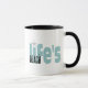La vida es un tazón de café de playa. Negro y Beach Blue con pez estrella. Diseño del Emporio de Jenn.