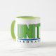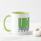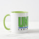 Bomba blanca con mango verde y color verde y azul logotipo corporativo de Laboratorios Unidos