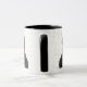 "Besos de cachorro de labradoodle arreglan todo" declara esta taza para el dueño del perro de Labradoodle. La imagen de cada lado es un retrato de un adorable cachorro negro de Labradoodle. Las imágenes y el texto se colocan sobre un fondo blanco salpicado de confeti dorado.