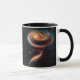 Los nudos de jóvenes, las estrellas azules calientes bejewel los brazos espirales en la luz de las estrellas que relucir mientras que debajo, su más pequeño, borde-en el compañero está pasando casi con la formación estelar intensa en su centro, quizás accionada por su encuentro.