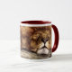 Un regalo perfecto para los amantes del gato grande y del león: Una pintura reproducida del aerógrafo de los leones el dormir dirige, basándose sobre un tronco de árbol. Arte animal maravilloso que hará su gusto del té, del café o del chocolate incluso mejor y aclarará encima de su oficina o cocina.