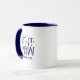 This ceramic coffee mug is shown in a festive holiday print let it snow somewhere else.