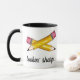 Taza Leyendo la escritura nítida amarilla #2 en la escu