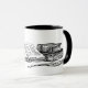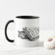 Una taza con libros antiguos y una alfombra para escribir en blanco y negro. Personalizar para agregar tu nombre o mensaje y más.