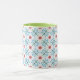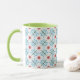 Una hermosa taza blanca de Ringer con un labio y un mango verdes y un patrón de lirios de agua, de un collage de papel pintado a mano de Judy Adamson. Excelente regalo para alguien con un cumpleaños de julio; parte de la colección Posh & Painterly 'Lily Pond'.