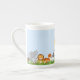 Taza linda azul de la porcelana de hueso de los