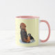 Taza lindo cachorro beagle acurrucando a mamá perro con