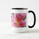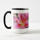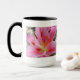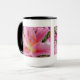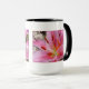Taza de café bonita con un primer de un lirio rosado y blanco del stargazer con los estambres anaranjados. ¡Grande para un amante de naturaleza! Fotografía de Digitaces de Sue Melvin