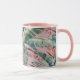 Patrón de hojas tropicales de color agua estilo república vintage original de los años 40 sobre un polvoriento fondo rosa de nuestra colección Key Largo