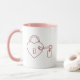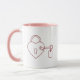 Charming Valentine's Day mug featuring elegant line art heart lock and key design with pink accents. Personalize with your name for a romantic gift. Perfect for couples, anniversaries, or showing someone they hold the key to your heart. Quality ceramic with colored handle and interior.