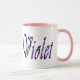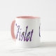 El logo con el nombre Violeta de bonito está hecho de Pansies morados y blancos.