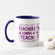 Sorprendente jarra con la cita "Los profesores van a enseñar" rodeada de material escolar