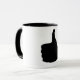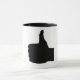 Taza Los pulgares suben el gesto, blanco detrás