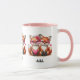 Una taza con una adorable imagen de dos zorros usando lindas gafas de corazón teñidas de rosa. Decorada con acentos cardíacos.
