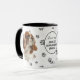 This mug for the Cavalier King Charles Spaniel Dog owner features an adorable portrait of a little brown and white spaniel. The image is printed twice, and between them is an oval with the black text that says "Love my Cavalier King Charles Spaniel". The oval and dog images are placed on a white background sprinkled with paw prints. Your monogram or name can be placed in a text field at the bottom.