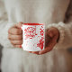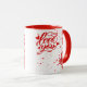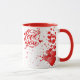 White-red mug with lots of red hearts and love you sign, for coffee or milk or hot chocolate