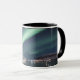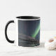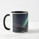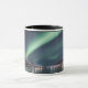 Fotografía paisajística de las verdes auroras boreales (Aurora borealis) reflejando en un fiordo congelado en la costa de Noruega del Norte, Escandinavia.
