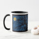 La fotografía del peck de Linda Baysinger de las ramas de árbol negras, con el cielo azul profundo de la tarde y la Luna Llena. ¡Para Halloween!