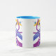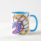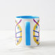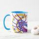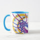 Esta taza ofrece un modelo complejo adornado en sombras del azul, de la magenta y del oro. Los objetos elementales abstractos se dispersan en todas partes: soles, lunas y trayectorias el curvar.
